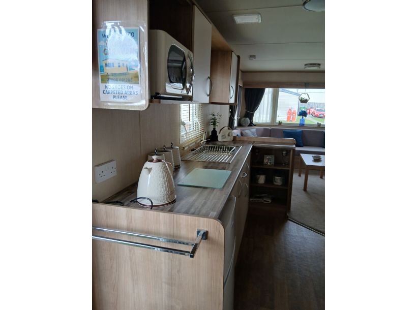 6 berth static caravan to hire at Cayton Bay in Scarborough. Seaside resort park, set on the coast with a sandy beach. Swimming pools, restaurants and activity centres, something for everyone. Lovely neutral colour scheme throughout. All bedding included for your stay with a free tea, coffee and sugar welcome pack.