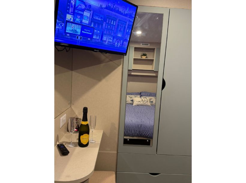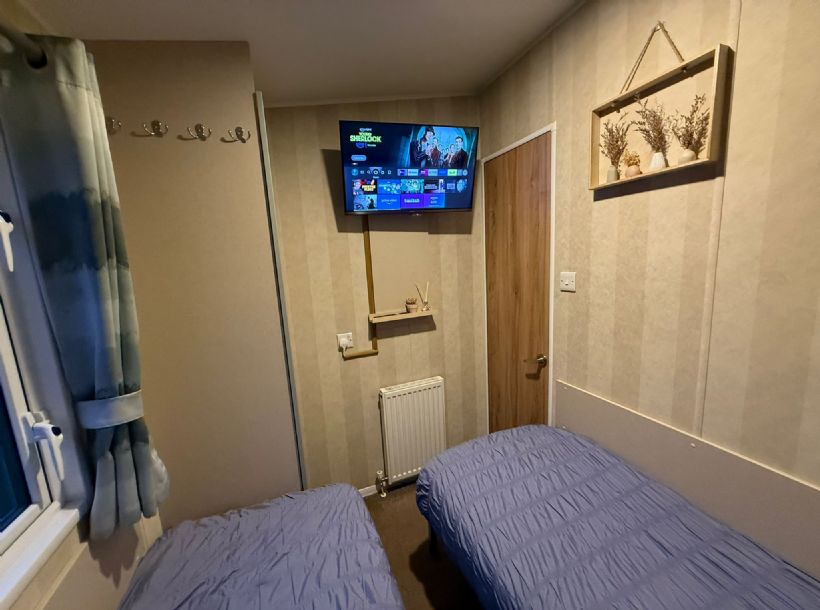 The caravan comfortably sleeps six guests across three tastefully furnished bedrooms. The master bedroom boasts a luxurious king-size bed dressed in premium, hotel-quality bedding, offering the ultimate night’s sleep. Two additional twin bedrooms each feature two full-size single beds, making this an ideal choice for families or groups. Every bedroom is equipped with its own fully loaded television, adding an extra touch of privacy and indulgence for each guest. Beds are beautifully made up prior to arrival, so you can step straight into relaxation from the moment you arrive.