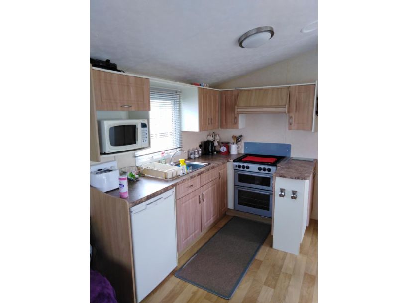 Inside, the caravan is loaded with gadgets. This really is a home from home Mobile Home and includes a Undercounter fridge, Microwave, Toaster, Toastie machine, and many more.The kitchen is a galley kitchen which you can see from the pictures its a social open plan area adjoining the living area.