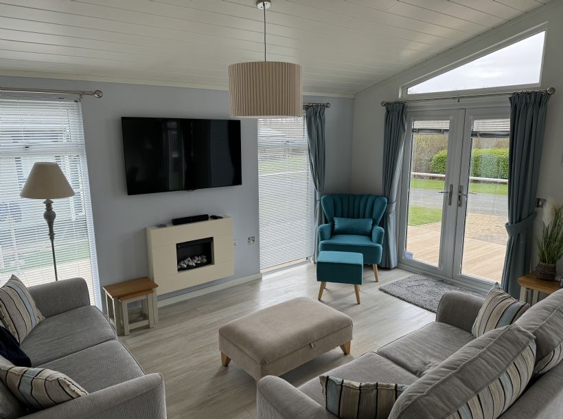 The lodge is 3 Bedroom (one with on-suite and bath) open plan lounge kitchen with decking to two sides that has the sun on it all days. We have beautiful views of the evening sun set to the front decking. It’s a great place to relax unwind and enjoy the Welsh cost line. The lodge is full equip for you to enjoy or holiday break. All bedroom have Duvet and pillows supplied and Lining can be supplied at extra cost.
