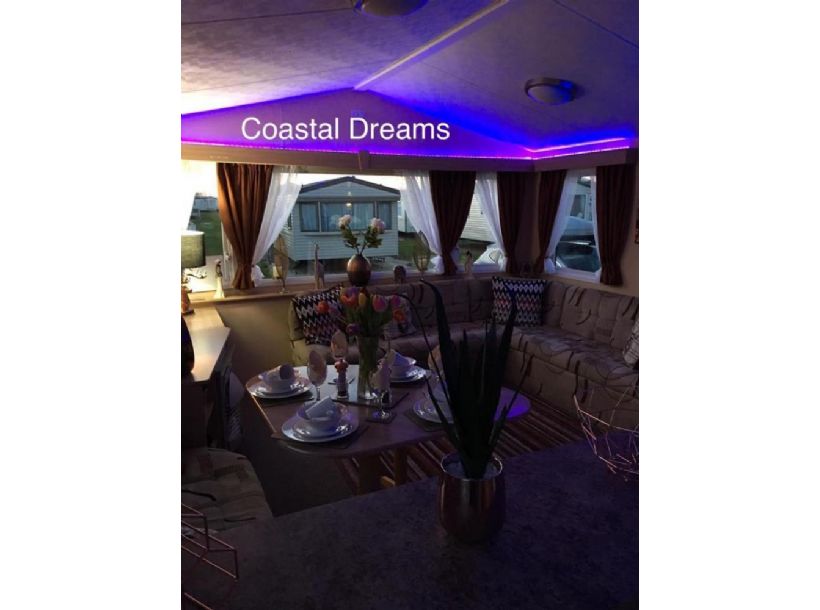 Coastal Dreams Caravan Hire, within walking distance of award winning sandy beach. Veranda with rattan furniture just added. Our 8 berth modern yet comfortable holiday home is for rent. Fully equipped for all needs. All bedrooms have TVs in them. All action site with indoor swimming pool, entertainment bar, coffee shops, arcades, laundrette, chip shop, food take aways a plenty, bouncy castles, mini golf, -- it 's even got it's own free train that will shuttle you around the park and through it's sister site, Kingfisher. A truly fun packed holiday to be had by all.